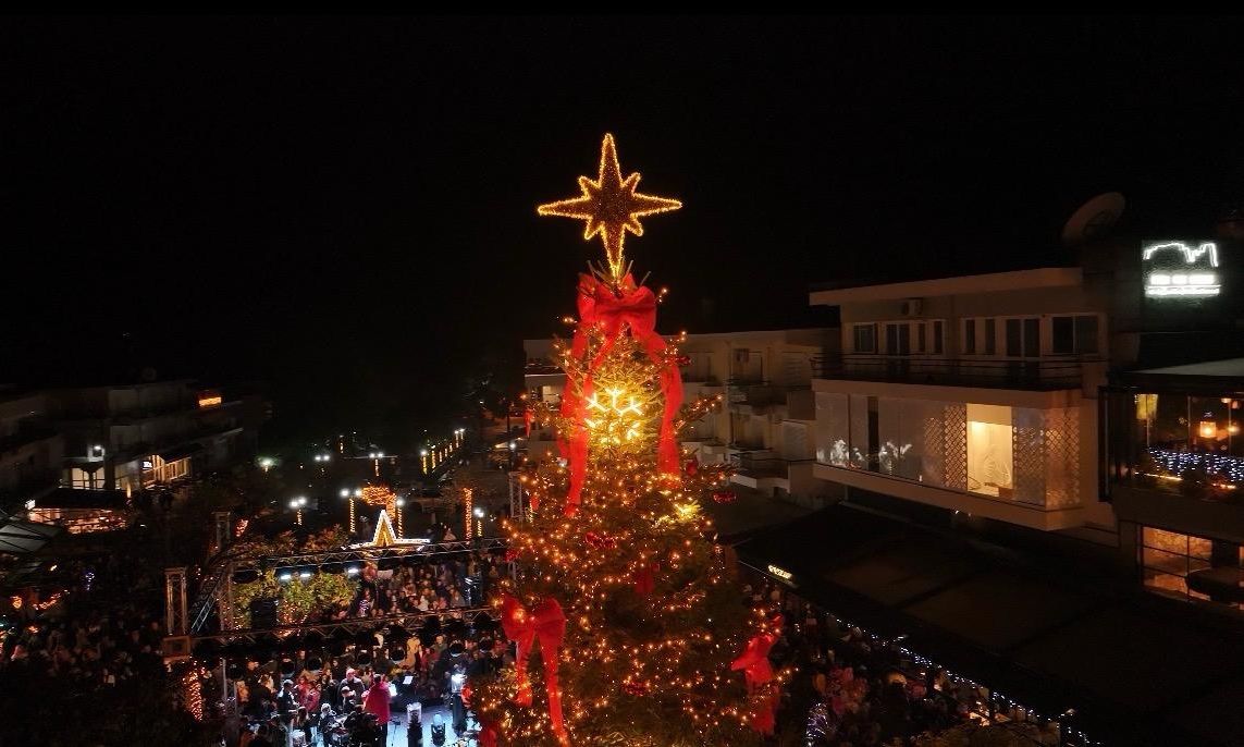 Μαγική νύχτα κάτω από τα Μετέωρα: Φωταγωγήθηκε στην Καλαμπάκα το χριστουγεννιάτικο δέντρο