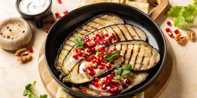 Μαριναρισμένες ψητές μελιτζάνες με σάλτσα ταχίνι και λεμόνι