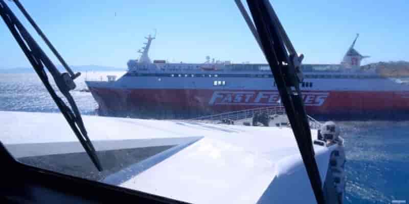 Με «χειρόφρενο» στο λιμάνι της Τήνου: Η εντυπωσιακή μανούβρα του Superrunner Jet (Βίντεο)