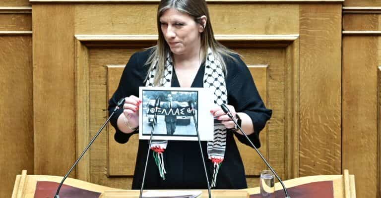 Με παλαιστινιακή καφίγια η Ζωή Κωνσταντοπούλου στη Βουλή – Κατέθεσε και δύο ερωτήσεις για την αστυνομική βία