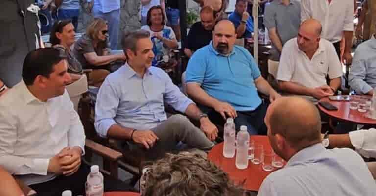 Με τον Τριαντόπουλο στη Σκιάθο ο Μητσοτάκης: Επίσημη στήριξη στον υπόδικο για τα Τέμπη