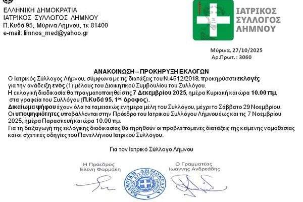 Μερική εκλογική διαδικασία στον Ιατρικό Σύλλογο Λήμνου