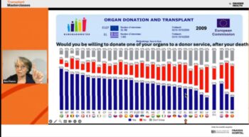 Πόσο πρόθυμοι ήταν οι Έλληνες να δωρίσουν τα όργανά τους; Επικαλούμενη αποτελέσματα παλαιότερων ευρωπαϊκών δημοσκοπήσεων, που έδειχναν ένα 43% των Ελλήνων να διάκεινται θετικά, επεσήμανε την επικοινωνία ως το κλειδί για να αυξηθεί αυτό το ποσοστό: «Δεν είναι εύκολο, αλλά πρέπει να μπορείς να επικοινωνήσεις τη σημασία της μεταμόσχευσης ακόμη και σε μια απλή συζήτηση στον καφέ ή στο δείπνο». Με ανοιχτή επικοινωνία και διαφάνεια αντιμετωπίζουμε και την παραπληροφόρηση, η πάταξη της οποίας είναι καθήκον όλων και όχι μόνο των κυβερνήσεων. «Πολίτες, ενώσεις ασθενών, όλοι έχουμε ευθύνη να αυξήσουμε την ευαισθητοποίηση, να ωθήσουμε σε αλλαγές και να επιτύχουμε βελτίωση» τόνισε.