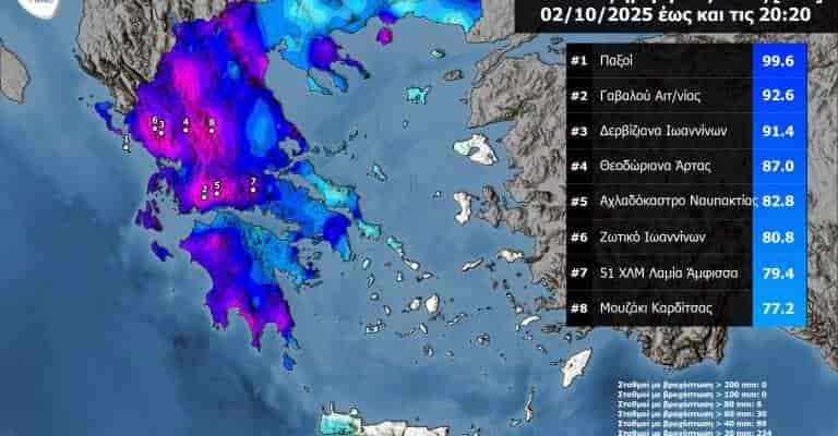 METEO: Στους Παξούς το μεγαλύτερο ύψος βροχής