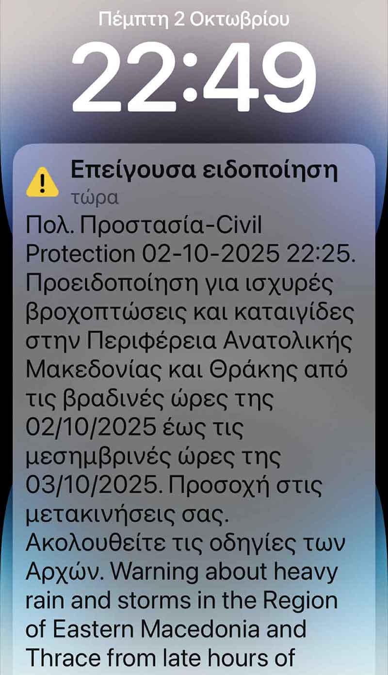 Μήνυμα 112 στην Ξάνθη για ακραία καιρικά φαινόμενα – Προειδοποίηση για ισχυρές καταιγίδες και βροχοπτώσεις