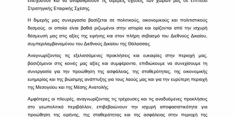 Μητσοτάκης – Σίσι: Αποκαλύπτεται το κείμενο της Κοινής Διακήρυξης για την Στρατηγική Εταιρική Σχέση Αθήνας – Καΐρου