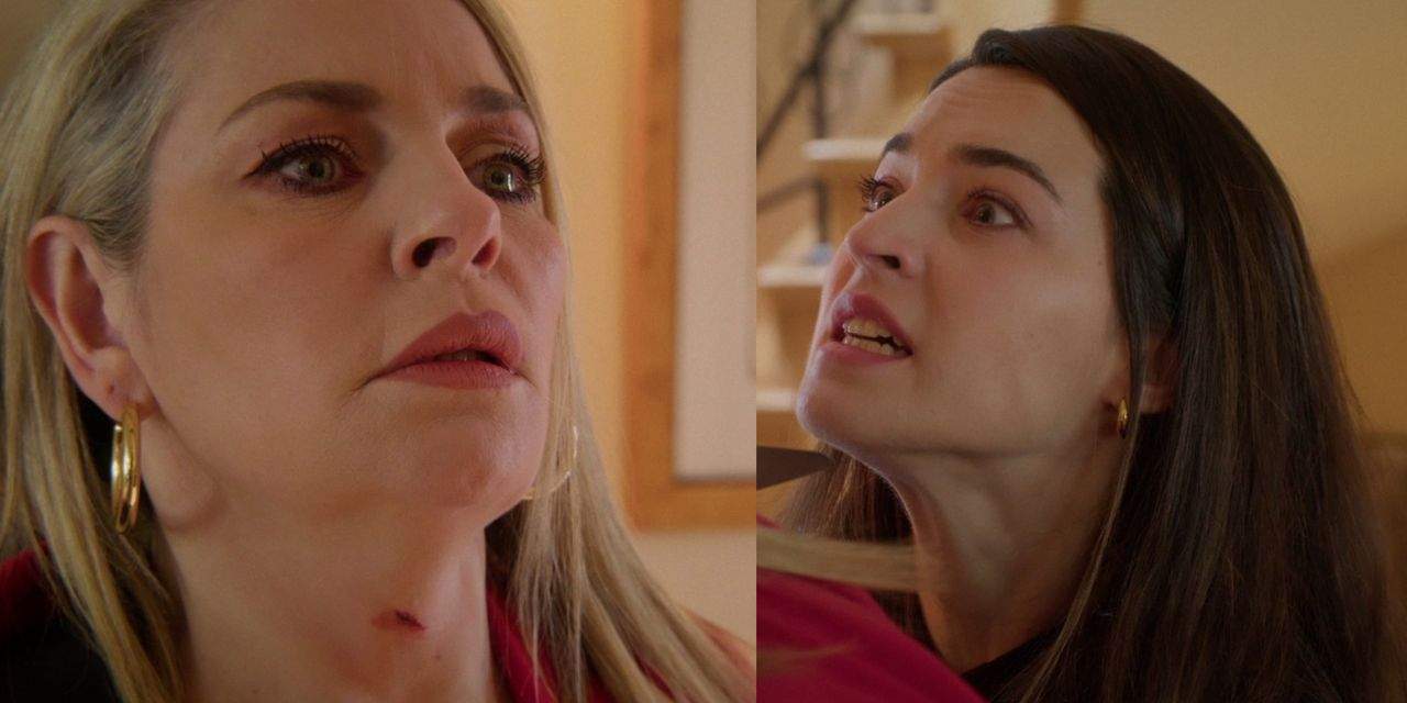 Η Άννα σε αμόκ, αρπάζει μαχαίρι: πρώτα απειλεί τη Σοφία και μετά τον Θεόφιλο στο γραφείο, όπου ο Ορφέας την αφοπλίζει και τη στηρίζει.