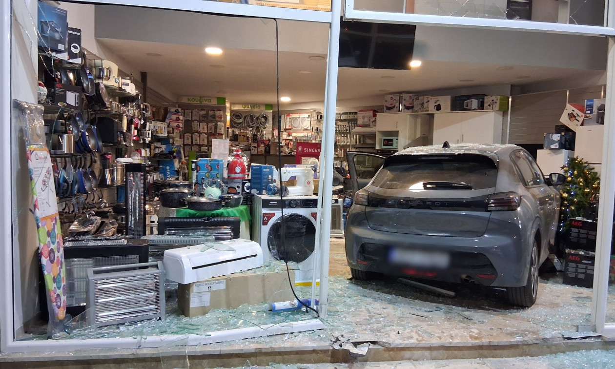 Ναύπλιο: Αυτοκίνητο διαπέρασε τζαμαρία καταστήματος ηλεκτρικών ειδών – Δείτε φωτογραφίες