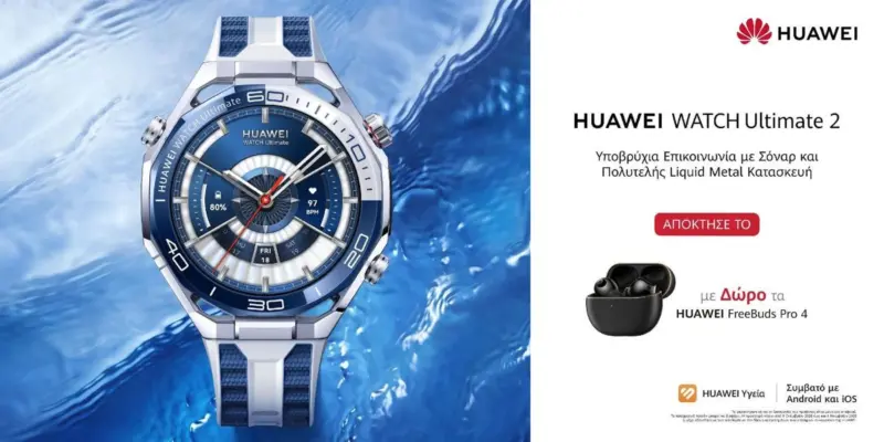 Διαθέσιμο στην Ελλάδα από 8 Οκτωβρίου 2025, είναι το HUAWEI WATCH Ultimate 2, το πρώτο smartwatch που υποστηρίζει υποβρύχια επικοινωνία με τεχνολογία sonar, προσφέροντας ασύγκριτη ασφάλεια και ευκολία στις καταδύσεις. Η συνέχεια του επιτυχημένου HUAWEI WATCH Ultimate, το Watch Ultimate 2, έρχεται με δώρο τα HUAWEI Freebuds Pro 4 με κάθε αγορά. To HUAWEI WATCH […]