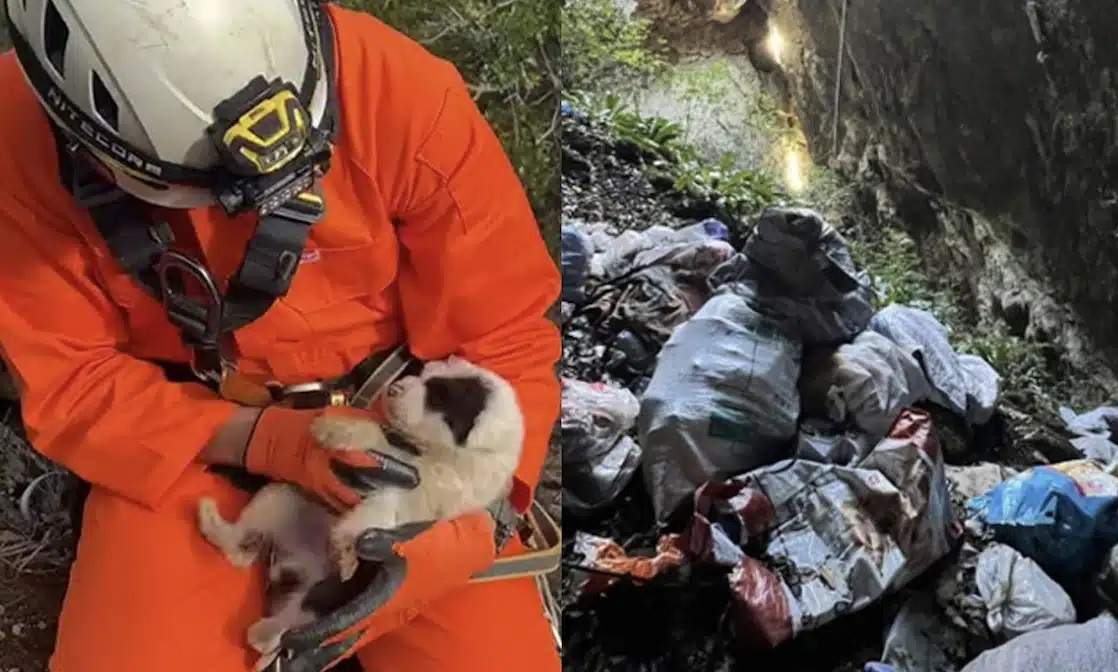 Νέα κτηνωδία-σοκ στην Ελλαδα: Πέταξαν κουτάβια σε γκρεμό 20 μέτρων, σώθηκε ένα που προστάτεψαν σακούλες σκουπιδιών