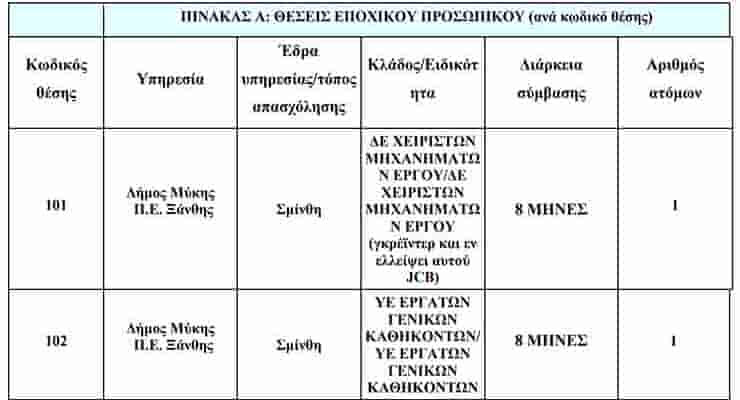 Νέες θέσεις εργασίας στον Δήμο Μύκης – Πρόσληψη δύο ατόμων με σύμβαση ορισμένου χρόνου