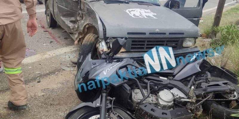 Από τη σφορδρή σύγκρουση στη Φωκίδα τραυματίστηκε θανάσιμα ο αναβάτης της μίας μηχανής – Ο άλλος μεταφέρθηκε σε νοσοκομείο στην Πάτρα, ενώ τραυματίστηκε και ο οδηγός του αγροτικού