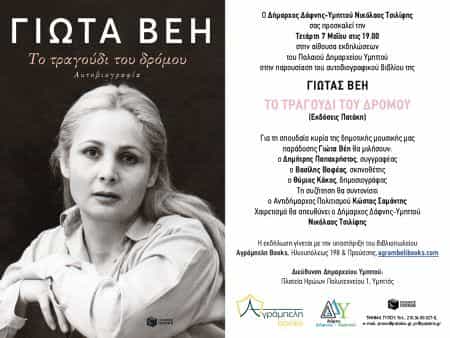 Με αφορμή την αυτοβιογραφία της που κυκλοφόρησε πρόσφατα και φέρει τον τίτλο «Το τραγούδι του δρόμου» – Τετάρτη 7 Μαΐου στις 19.00