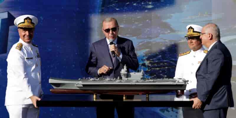 Ο Ερντογάν παρουσίασε τη μακέτα του «Εθνικού Αεροπλανοφόρου» της Τουρκίας – Η σκηνή που έγινε viral