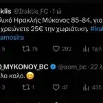 O Ηρακλής νίκησε την Μύκονο στο μπάσκετ και ακολούθησε επική ατάκα: «Να μάθετε να χρεώνετε 25 ευρώ τη χωριάτικη»