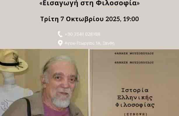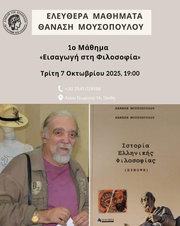 «Ο Κόσμος της Φιλοσοφίας» στο Λύκειον των Ελληνίδων Ξάνθης – Νέος κύκλος μαθημάτων με τον Θανάση Μουσόπουλο
