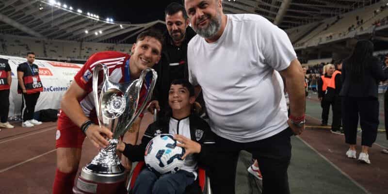 Ο μικρός Γιάννης Παπαστεφανάκης κράτησε το Κύπελλο Ελλάδας και φωτογραφήθηκε με τον Βαγγέλη Μαρινάκη και τον Παναγιώτη Ρέτσο