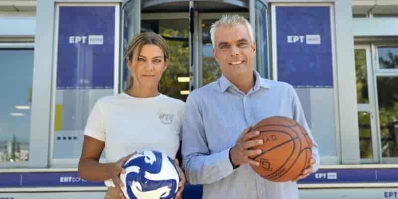 Ο Πέτρος Μαυρογιαννίδης και η Χριστίνα Βραχάλη στην παρουσίαση της «Αθλητικής Κυριακής»