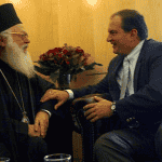 Ο πρώην Πρωθυπουργός Κ. Καραμανλής αποχαιρετά τον Αρχιεπίσκοπο Αναστάσιο με συγκίνηση