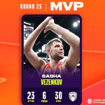 Ο Σάσα Βεζένκοφ MVP για 5η φορά στην τρέχουσα σεζόν