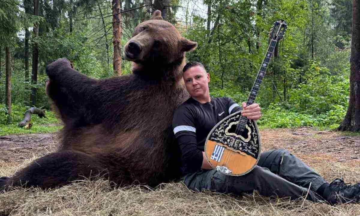 Ο θαρραλέος Έλληνας μουσικός που παίζει μπουζούκι κάνοντας βόλτα με μια αρκούδα στη Μόσχα
