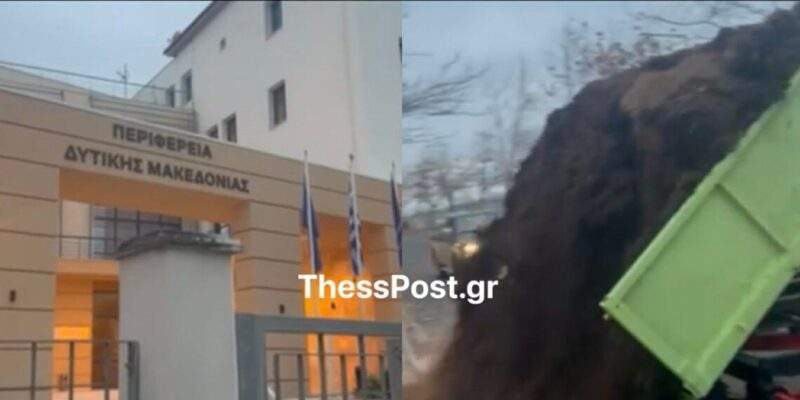 Οι αγρότες έριξαν 4 τόνους κοπριά έξω από την Περιφέρεια Δυτικής Μακεδονίας