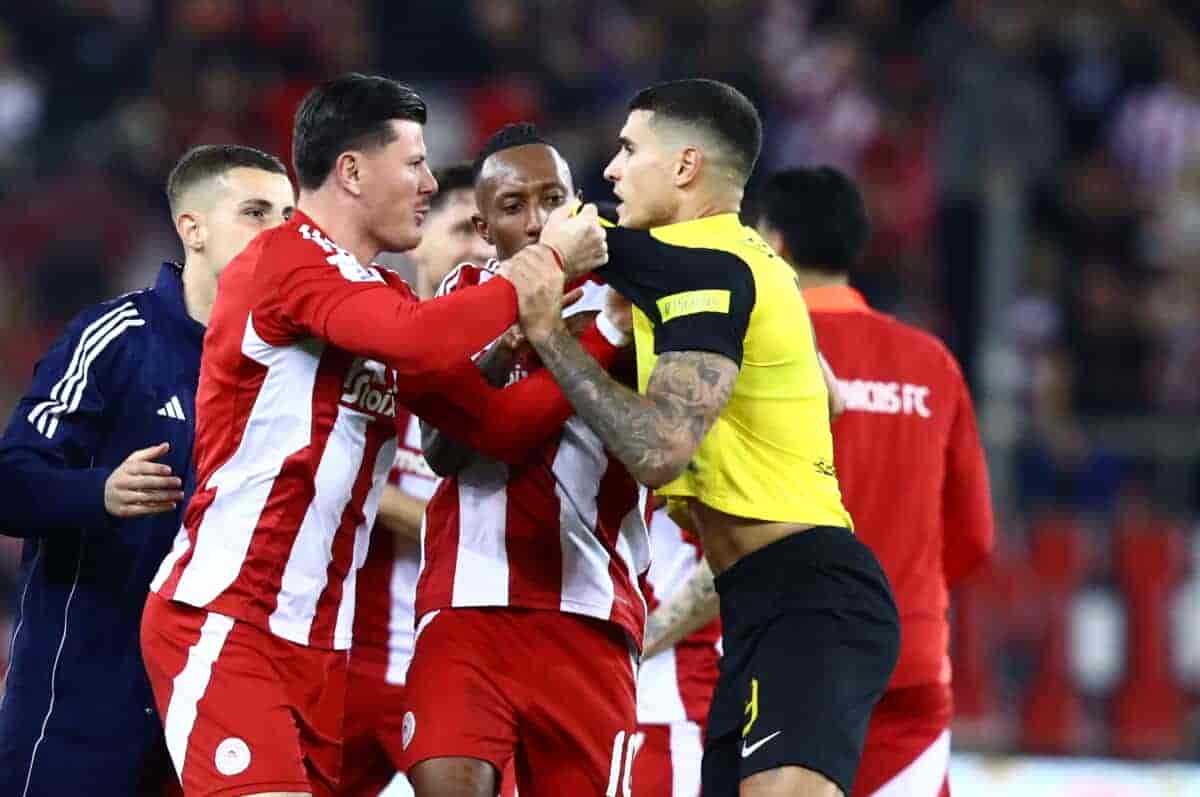 Ολυμπιακός – ΑΕΚ: Χαμός στο φινάλε με ξύλο μεταξύ των παικτών και κόκκινες κάρτες