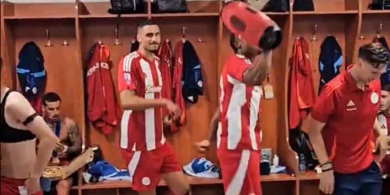 Ολυμπιακός: Οι πανηγυρισμοί στα αποδυτήρια του ΟΑΚΑ και το ερυθρόλευκο μήνυμα με τα μετάλλια του Μεντιλίμπαρ