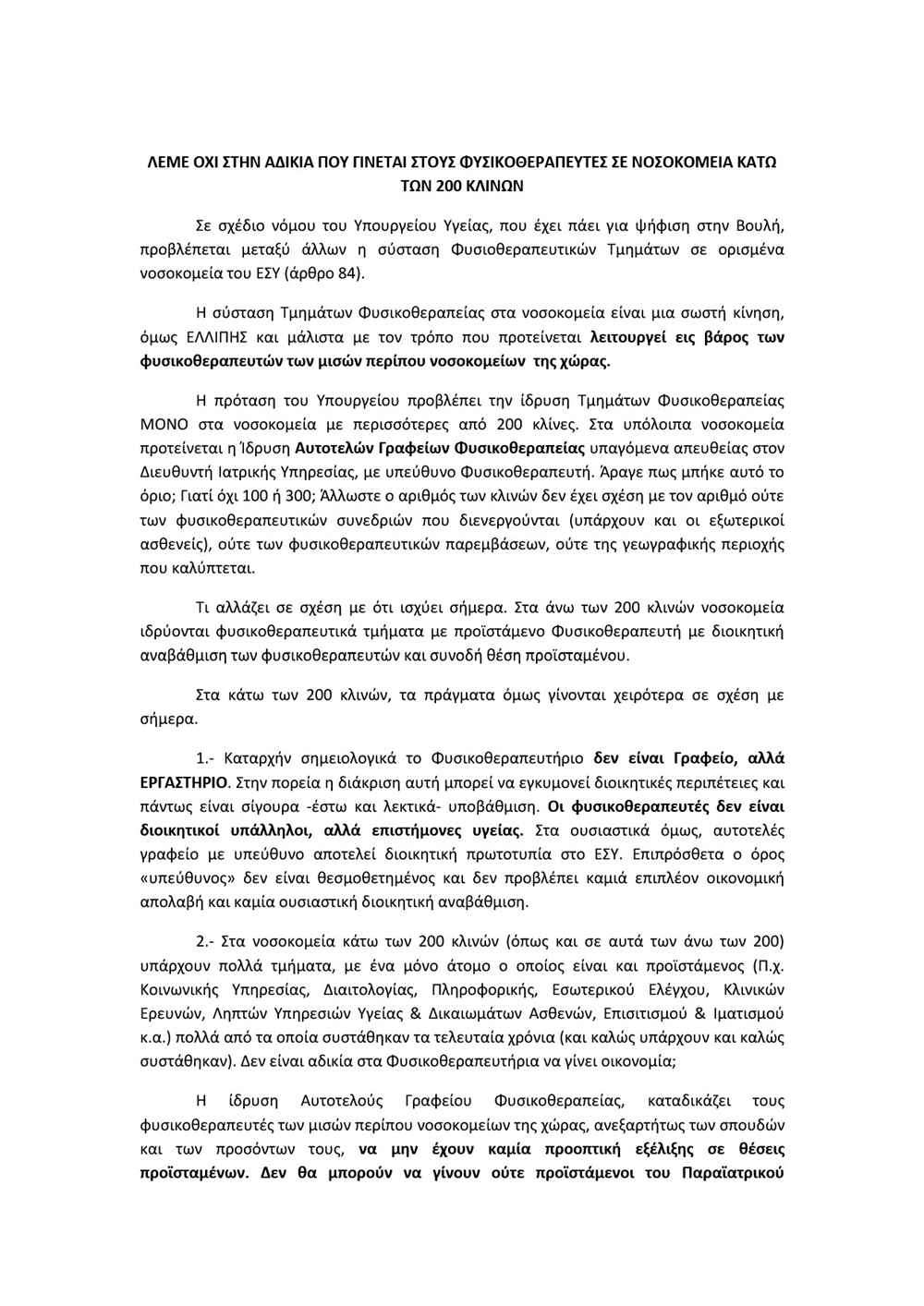 Οργή στα νοσοκομεία για το άρθρο 84 – Διαμαρτυρία φυσικοθεραπευτών και από το Νοσοκομείο Λήμνου