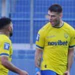 Παναιτωλικός – ΟΦΗ: Ο Μαϊντέβατς αξιοποίησε την εκπληκτική σέντρα του Μπακάκη και με κεφαλιά έκανε το 1-0 για τους γηπεδούχους