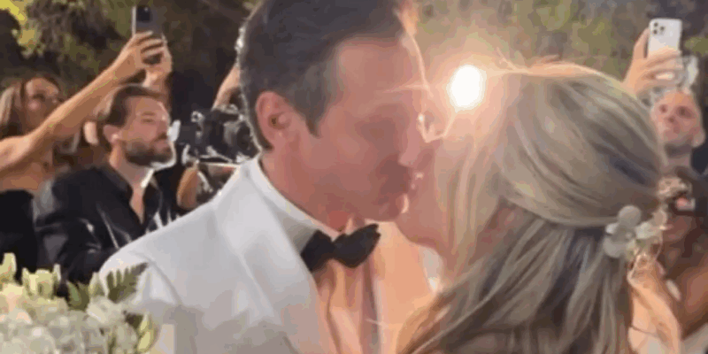 Παντρεύτηκαν ο Πάνος Καλίδης και η Λεάννα Μάρκογλου – Η άφιξη της νύφης και το φιλί