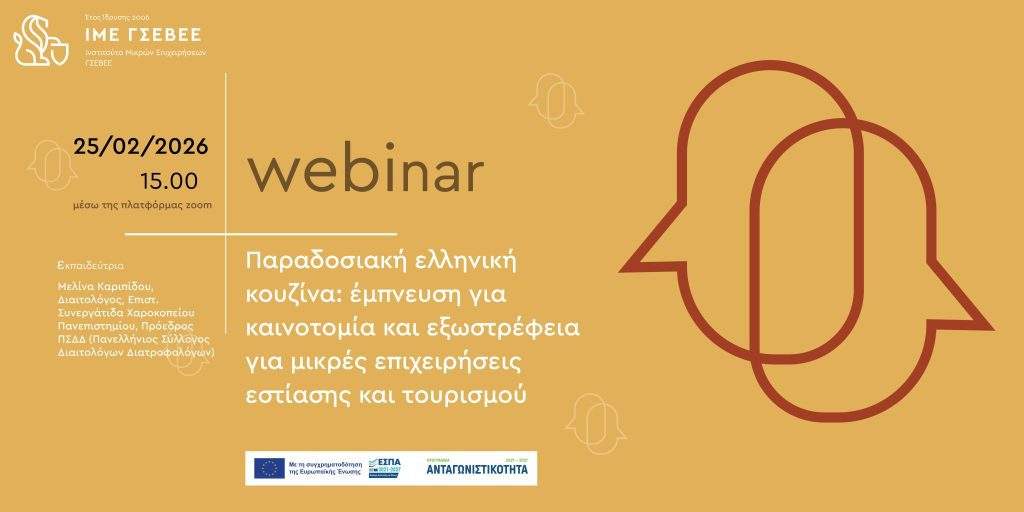 «Παραδοσιακή ελληνική κουζίνα: έμπνευση για καινοτομία και εξωστρέφεια για μικρές επιχειρήσεις εστίασης και τουρισμού» : Δωρεάν webinar από το ΙΜΕ ΓΣΕΒΕΕ