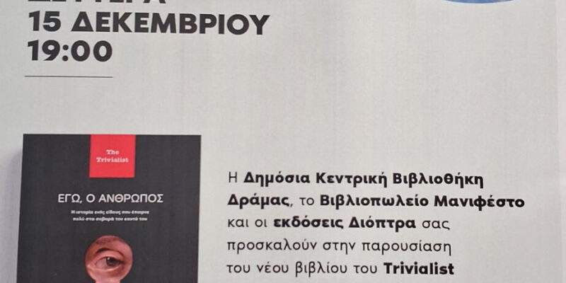 Παρουσίαση του βιβλίου «Εγώ ο άνθρωπος» του συγγραφέα The Trivialist