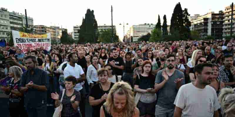 Πλήθος κόσμου στη συγκέντρωση αλληλεγγύης στον απεργό πείνας Πάνο Ρούτσι που ζητά την εκταφή του παιδιού του