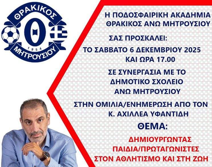 Ποδοσφαιρική Ακαδημία «Θρακικός» – Δημ.Σχολείο Ά.Μητρουσίου: «Δημιουργώντας Παιδιά Πρωταγωνιστές στον Αθλητισμό και στη Ζωή»