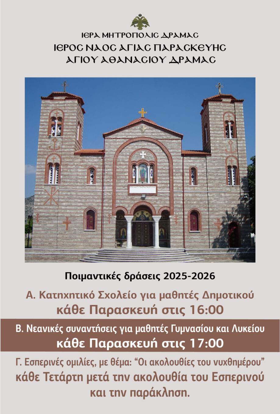 Ποιμαντικές δράσεις στον Ι.Ν. Αγίας Παρασκευής Αγίου Αθανασίου Δράμας