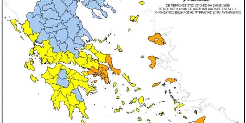 Πολύ υψηλός κίνδυνος πυρκαγιάς σήμερα σε Αττική και άλλες τέσσερις περιφέρεις της χώρας (Χάρτης)