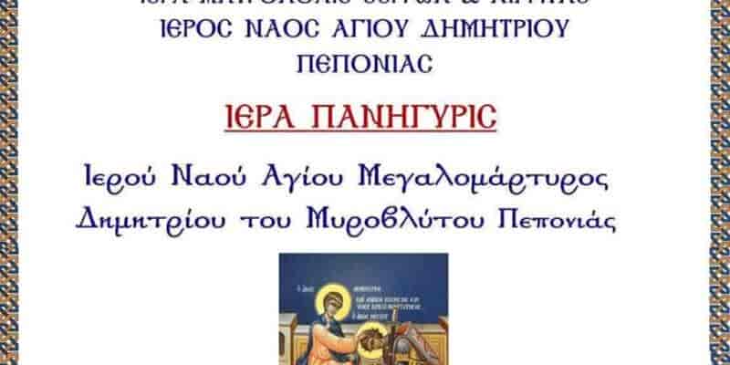 Πρόγραμμα Ιεράς Πανηγύρεως Αγίου Δημητρίου στην Πεπονιά Σερρών