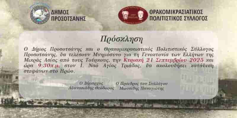 Προσοτσάνη: Μνημόσυνο για τη Γενοκτονία των Ελλήνων της Μικράς Ασίας