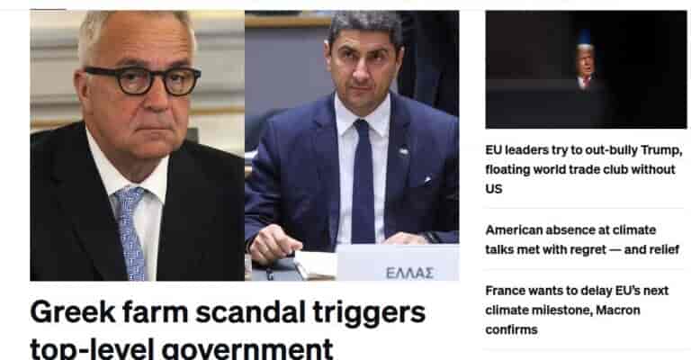 Το μεγάλο πολιτικό σάιτ της Ευρώπης ενημερώνει τους αναγνώστες του ότι «σκάνδαλο με γεωργικές επιδοτήσεις στην Ελλάδα οδηγεί σε παραιτήσεις…