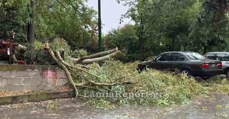 Προβλήματα από μπουρίνι στη Λαμία: Πτώσεις δέντρων και διακοπές ρεύματος