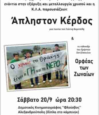 Προβολή ταινίας του Γιάννη Καρυπίδη “Άπληστον Κέρδος” στην Αλεξανδρούπολη