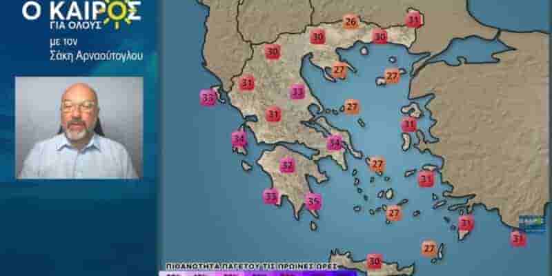 Σάκης Αρναούτογλου: Έρχονται 35αρια και όχι βροχές – Ο καιρός μέχρι 17/9