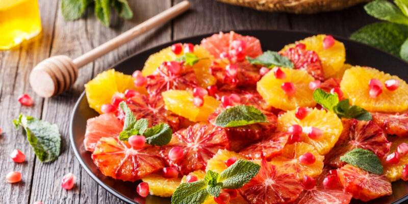 Σαλάτα εσπεριδοειδών με ντρέσινγκ κανέλας και φιστίκια Αιγίνης