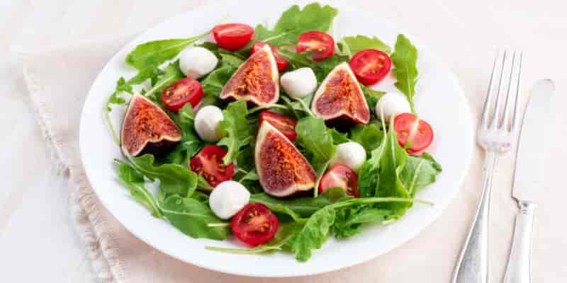 Σαλάτα με φρέσκα σύκα, μοτσαρέλα, ντοματίνια και βασιλικό