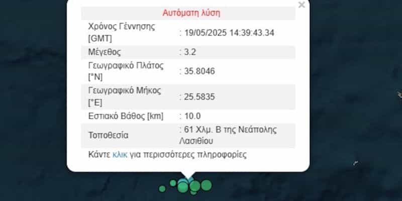 Σεισμός 3,2 Ρίχτερ στην Κρήτη