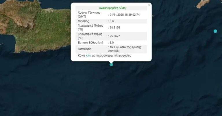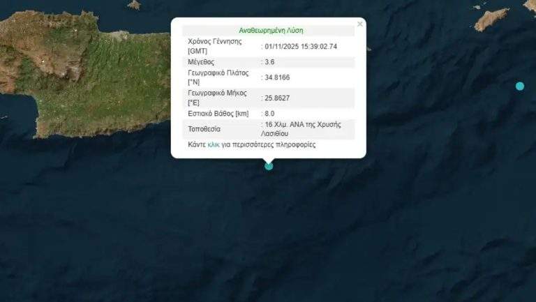 Σεισμός 3,6 Ρίχτερ ανοιχτά του Λασιθίου