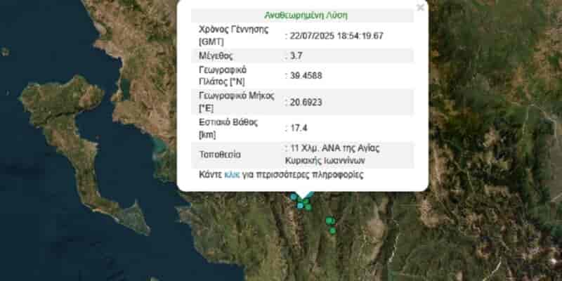 By ΕΙΔΗΣΕΙΣ 247 ShareShare NEWSITΣεισμός 3,7 Ρίχτερ στα Γιάννενα σε χαμηλό εστιακό βάθος 22 Ιουλίου, 202547 views0Σεισμός 3,7 Ρίχτερ στα Γιάννενα σε χαμηλό εστιακό βάθος Μετάβαση στην Πηγή Author: Σπύρος ΠλουμίδηςΚοινοποίηση Πως σας φάνηκε το αρθρο? ΑΠΙΘΑΝΟ 0 ΚΑΛΟ 0 ΜΕ ΑΡΕΣΕ 0 ΟΚ ΔΕΝ ΤΡΕΛΑΘΗΚΑ 0 ΧΑΧΑ ΕΛΑ ΠΛΑΚΑ ΚΑΝΕΙΣ 0