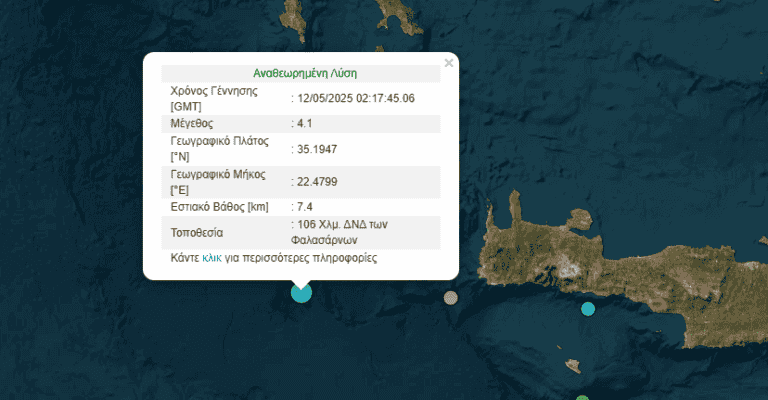 Σεισμός 4,1 Ρίχτερ ανοιχτά των Φαλασάρνων