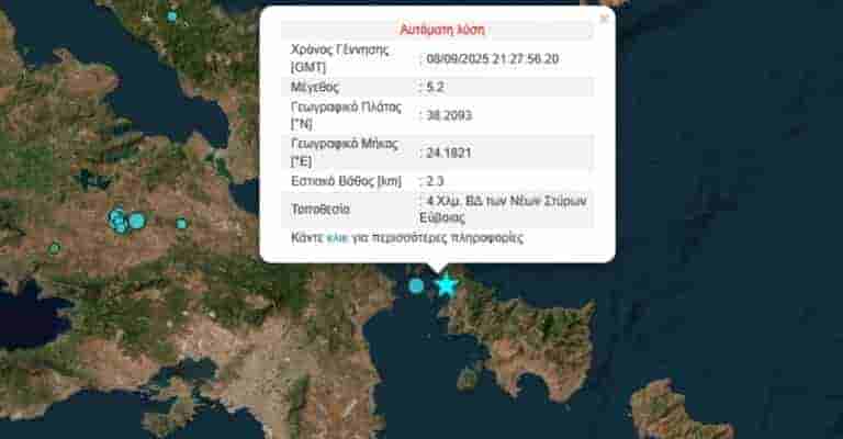 Σεισμός 5,2 Ρίχτερ στα Νέα Στύρα Ευβοίας – Ιδιαίτερα αισθητός στην Αττική